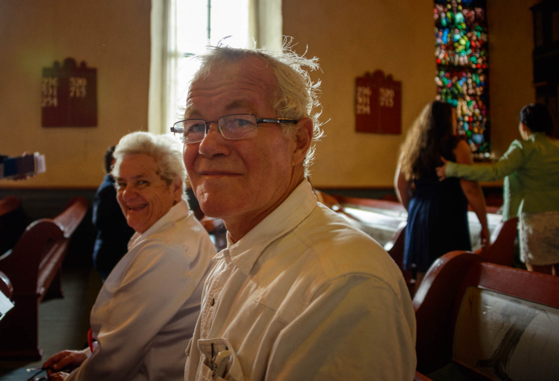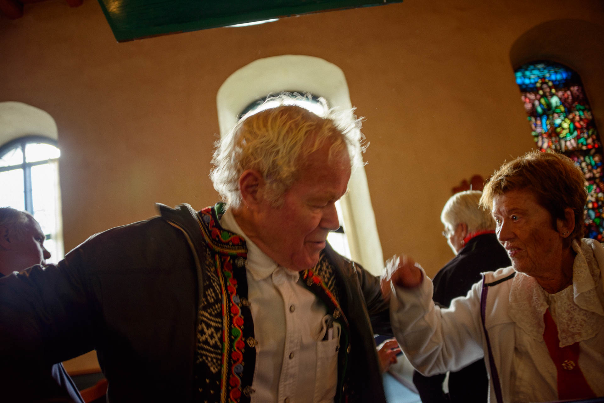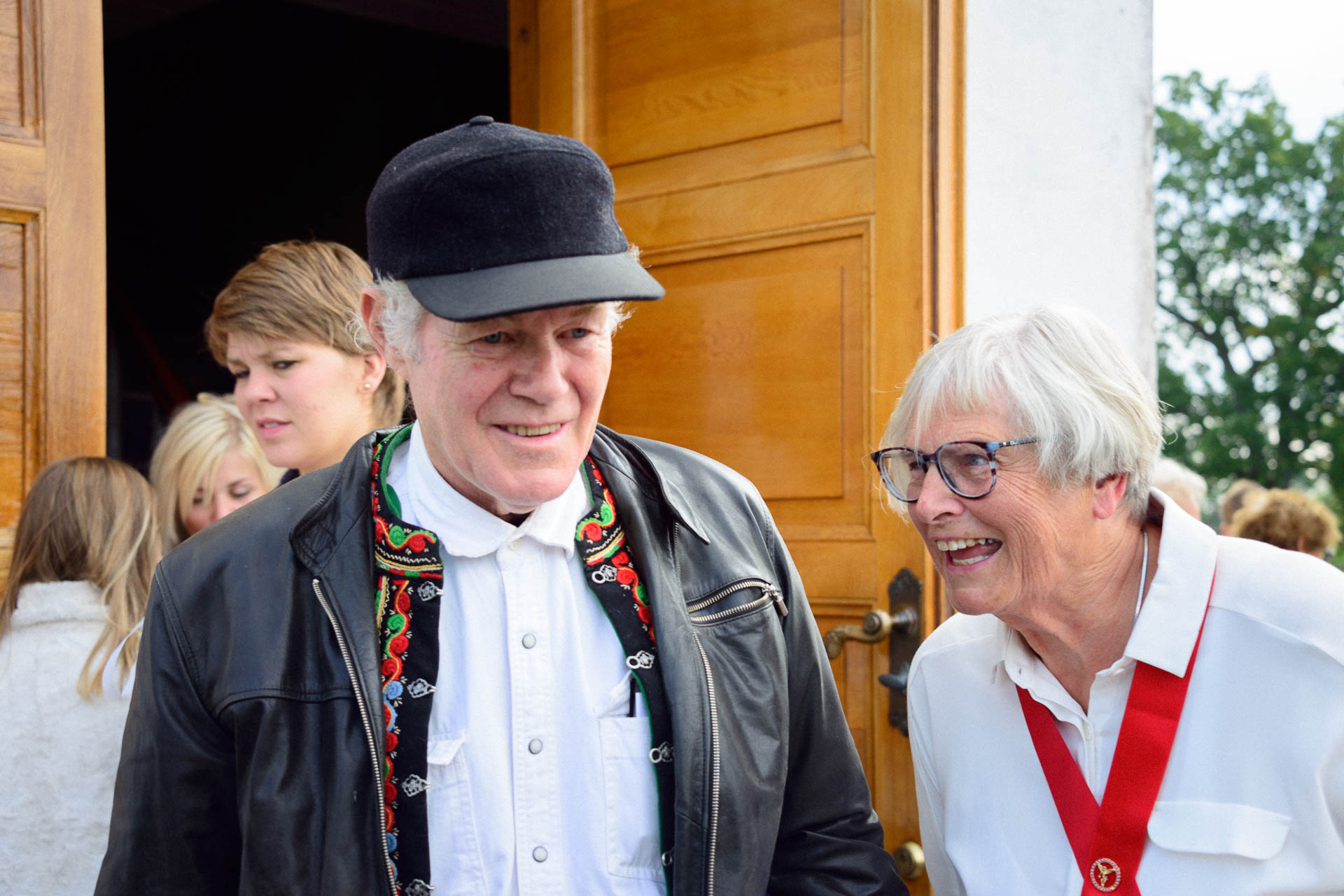 Endelig en kor-økt! Sidemannen sier ja til å ta et par bilder. Pappa gjemmer seg bak en vakker eldre dame med briller, og prøver stadig å avslutte og begynne å gå ned fra podiet.
