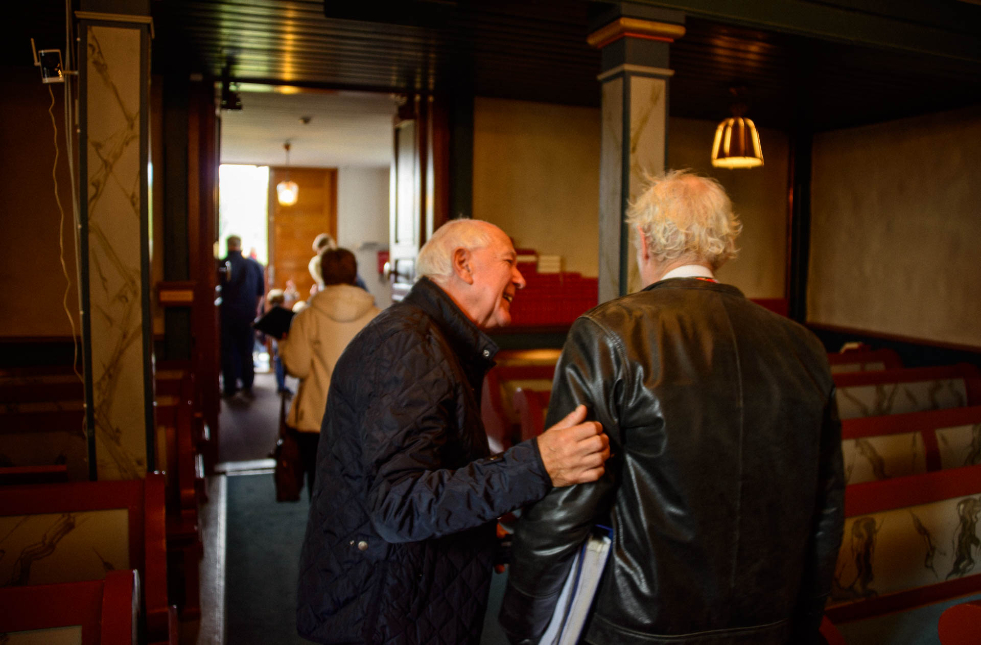 Og geleides ut av en annen kjenning av koret.